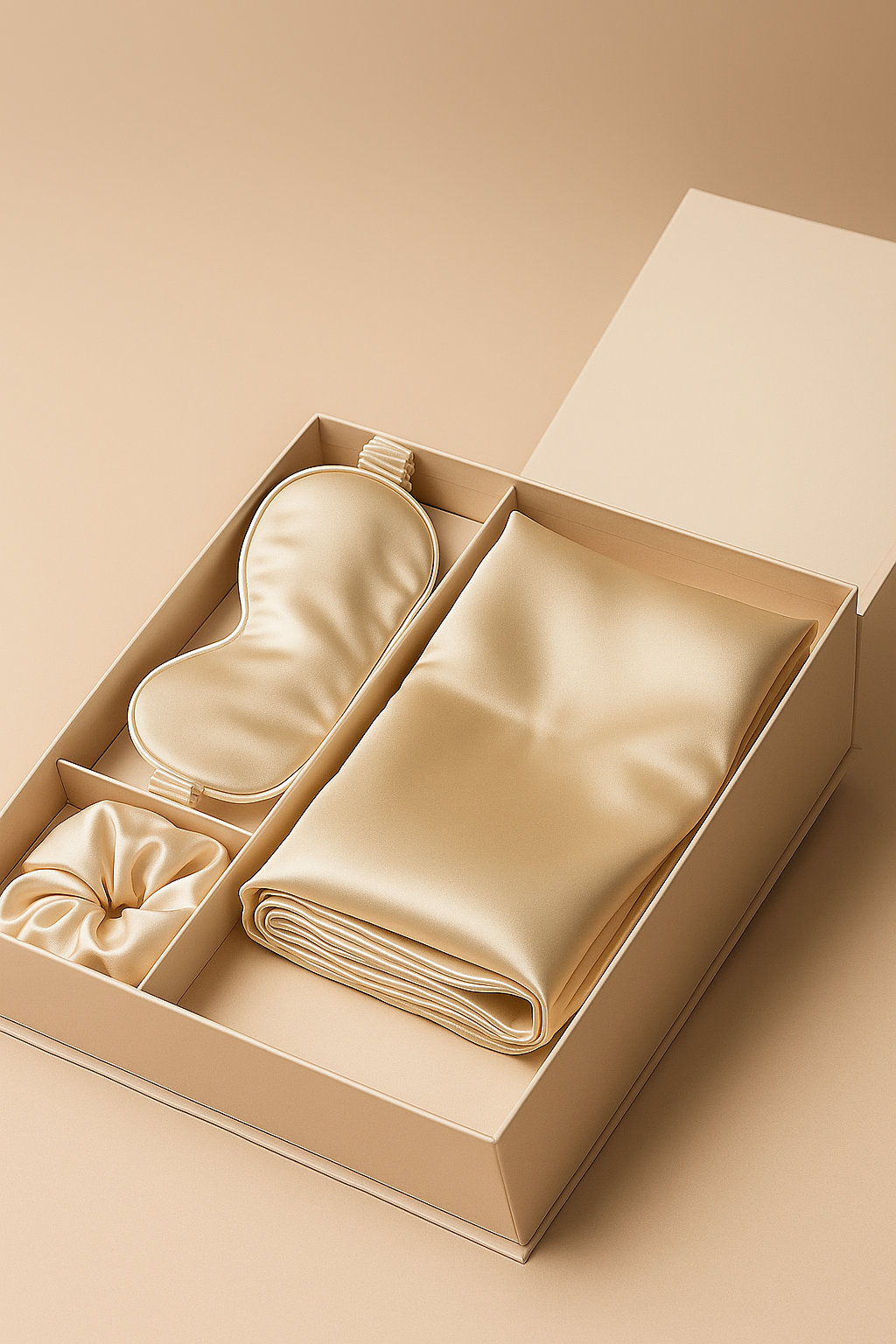 What's included: - 2 Queen Size Silk Pillowcases 22mm - 1 Silk Scrunchie - 1 Sleep MaskAll